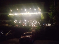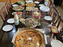 풀장에서의 야외식사...